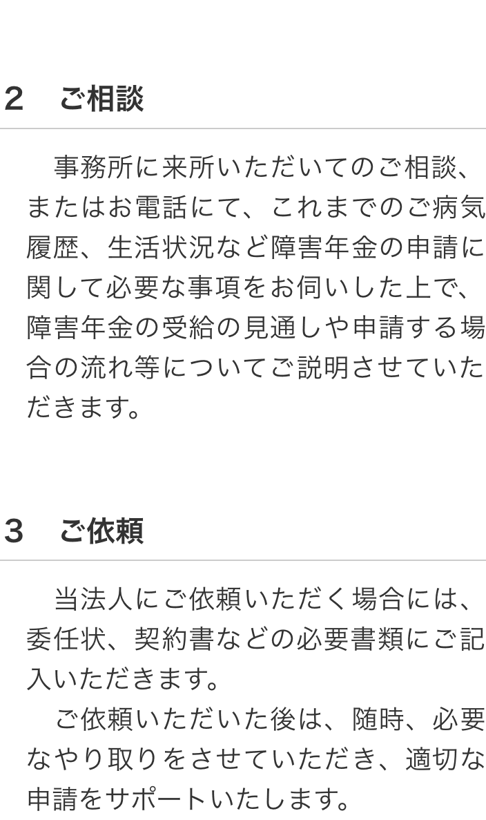 こちらのページでは、障害年金についてご相談・ご依頼いただく際の流れについてご案内しています。